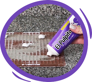 + Si al aplicar El Pulpito® quedaran restos de producto, las superficies afectadas pueden lavarse con agua o agua con detergente antes de que el adhesivo se endurezca.